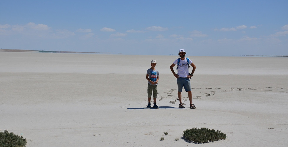 Wer uns kennt, der weiß, dass wir an der Natur und vor allem an den Tieren besonders interessiert sind. Da kommt uns der riesige Tuz Gölü (Salzsee) gerade recht. Wir erfahren, dass es dort viele Flamingos geben soll. Wir machen uns auf den Weg dorthin und was wir finden ist eine riesige Salzfläche. Obwohl hier weit und breit keine Flamingos sind, finden wir an dieser scheinbar irrealer Welt Gefallen und spazieren durch die Salzwüste.